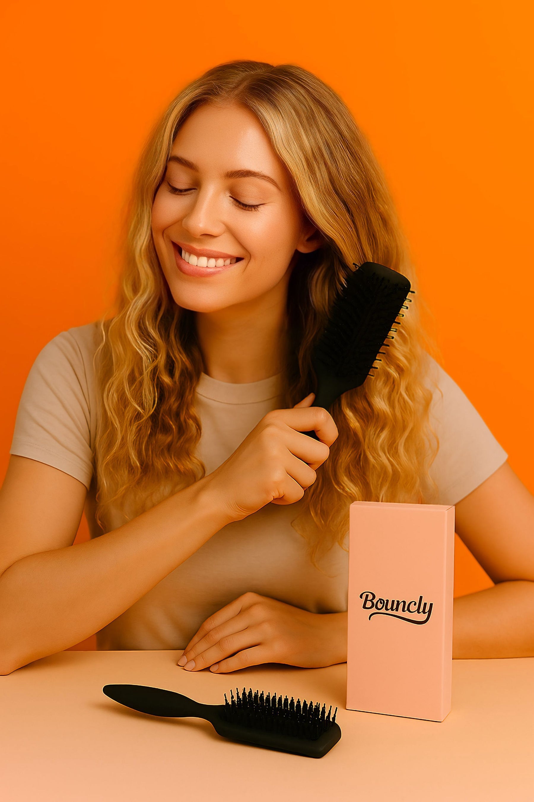 Answer 4: Bouncly works best on wet or damp hair with your favorite leave-in or gel. For refresh days, lightly mist your hair with water or curl spray before brushing to get smooth, defined results.